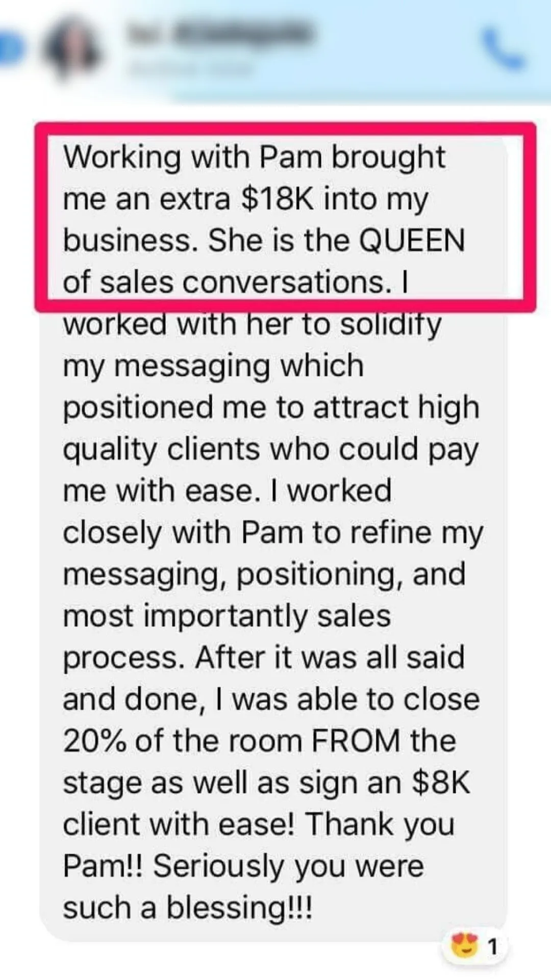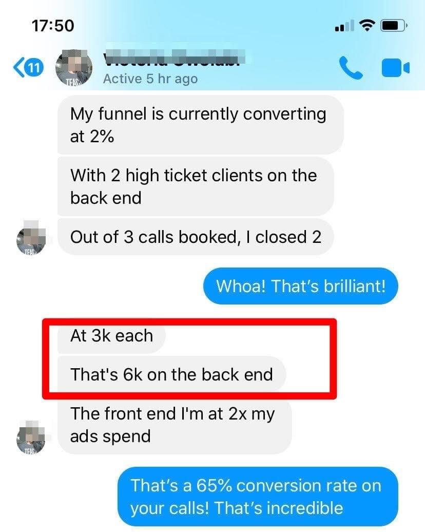 6 people scheduled a call with me and by the end I’d closed 5 into my program ($3k at that time)